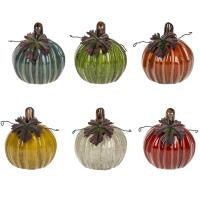 Ceramic pumpkin figurines, perfect for tray decor or as a simple shelf sitter to decorate for the season. Available in 6 colours. Approx 3”d